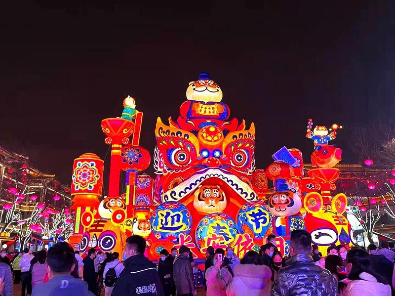 正月十五元宵佳节,夜幕降临后古城西安华灯初上,璀璨的灯光将各式花灯点缀的格外耀眼,令人震撼。图为大唐不夜城展出的虎年特色花灯。