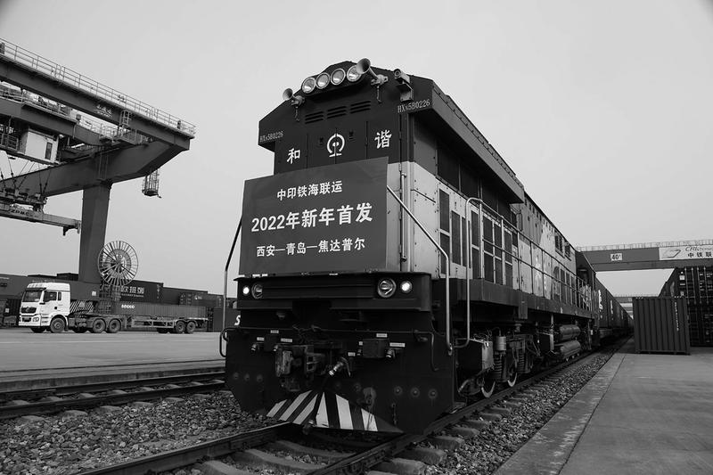 2月14日下午15时,伴随着机车一声长鸣,满载着50个集装箱太阳能板和太阳能组件的49078次列车从西安国际港站出发,开往青岛黄岛港,再通过轮渡将货物运往印度,这是2022年陕西开出的首趟中印铁海联运班列。
