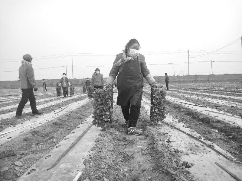 近日,在兴平市丰仪镇丰仪村的田野里,几十名群众正在种植春季大白菜,大家挖坑、栽苗,插竹竿、搭小拱棚,一切显得井然有序。