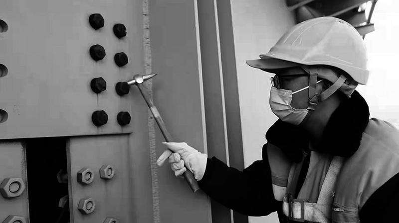 “在漆黑空旷的箱梁桥内,检查锤就相当于我们的‘听诊器’,通过敲击检查梁体螺栓是否有松动、脱落、开裂,有无危及上方的铁路线路安全。”借着头灯的光亮,张晋刚带着职工检查洞内支座设备情况,由于桥洞内环境潮湿,桥梁活动支座和螺栓经常被锈蚀,需要他们定期检查、除锈和更换锈蚀螺栓。