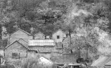 走出村子,在空旷的原野上,只见一家家高屋堆叠,却只有一两家屋顶上升起了袅袅炊烟,显得有些孤寂而荒凉。