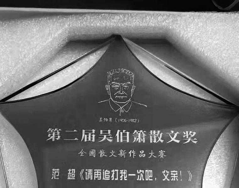 吴伯箫先生是山东省济南市莱芜区人,其散文名篇《记一辆纺车》、《菜园小记》等入选中学语文课本,教育了几代人。据悉,当天是吴伯箫诞辰纪念日,同时今年也是吴伯箫逝世40周年。为纪念这位从延安走出的红色作家和教育家,向党的二十大献礼,由山东作协散文学会等十余家单位举办的第三届全国吴伯箫散文奖线上启动仪式在济南举行,同时第二届吴伯箫散文奖最终揭晓,其获奖作品集正式出版发行,范超的作品《请再追打我一次吧,父亲》赫然名列前十。范超是全国青联委员、中国作协会员、陕西首批优秀青年文艺家、陕西省青年五四奖章、西安市委市政府“西安之星”等多项荣誉持有者,十年来坚持业余笔耕不辍,已经出版《土天堂》、《故乡空远》、《乡愁西安》、《曲江记》、《我们在大地上只过一生》、《老屋》等专著30部,先后荣获全国孙犁散文奖、全国冰心散文奖、陕西柳青文学奖等百余项奖励。全省首个青年文学馆——范超文学馆创办一年来,在促进乡村振兴、公共文化惠民、激发青少年教育等方面影响显著。吴伯箫散文奖是范超在2022年包括孟姜女散文奖在内获得的第三项全国性大奖。另外作为西安铁一中学子家长,他书写西安战疫情的组诗,刚刚荣获西安碑林区教育局阳光育人工程征文唯一的一个特等奖。