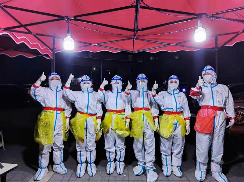 他们太累了,本以为可以好好休整一天,可命令来的太突然。3月19日13:30,接到上级指令,要求医院派出核酸采样员对汉中路办事处辖区的六栋封控楼进行入户核酸采样。医院领导考虑到同志们连续多天奋战,已经疲惫不堪,就采用志愿招募的方式征集14名同志,参与汉中路封控楼核酸采样工作。没想到大家积极性依然高涨,很快就组建了14人的采样队伍,立即转运到岗投入工作。