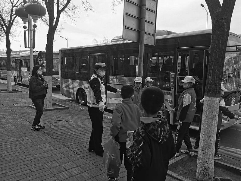 近期,为进一步推进构建“家校警”护学新模式,全力保障中小学生上下学交通安全。府谷县城区中队交警结合校园周边交通特点,联合学校、家长设置“家校警”护学岗,在校门口组织“家警校”义务护学队,对学生进行交通知识教育,排查整治校园周边交通安全隐患,规范设置学校交通标志标识,倾力筑牢校园交通安全防线。