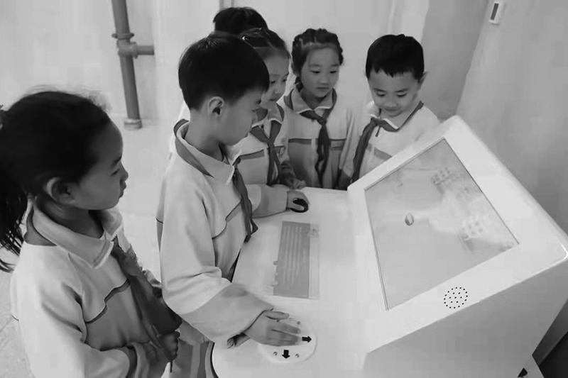 同学们在地震模拟专业安全教室学习有关地震知识