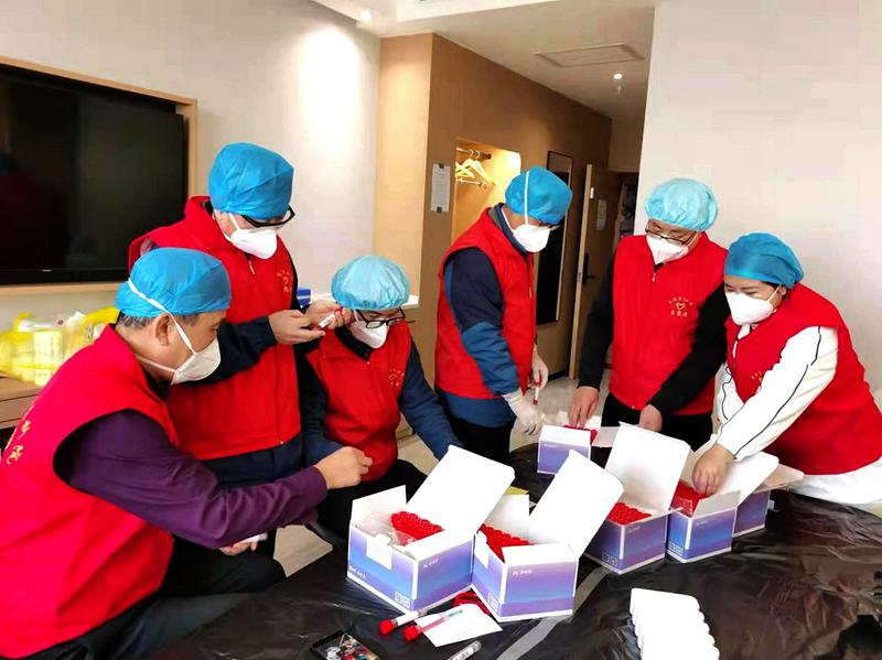 为这些隔离人员提供服务,为他们上门做核酸,提供物资,送餐送水。天天与确诊及密接者接触,难免会有风险。然而,志愿者们只能自己做好自身防护,对同事负责,对家人负责。党员的党性和担当不容许他们临危退缩。