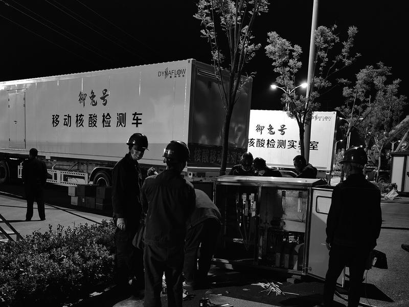 4月11日凌晨,为应对近期突发新冠肺炎疫情,国网渭南蒲城县电公司安排专人为3辆核酸方舱移动检测车进行现场接电,全力做好疫情防控下的供电服务保障工作。
