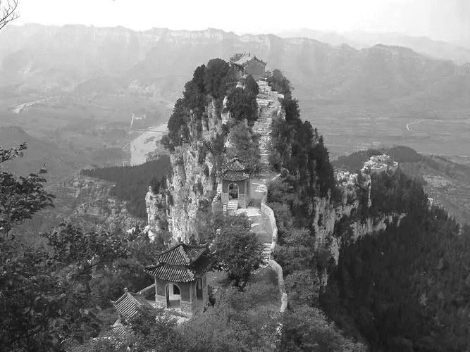 马鞍山位于淄川区淄河镇口头村的淄河东岸,1958年之前隶属于博山县七区,因为抗战时期一场震惊中外的保卫战役,马鞍山和许多革命先烈的英名一起载入了史册。如今,这里是省级爱国主义教育基地,著名的红色旅游景区,游客在山下乘坐摆渡车,沿着宽阔的山路,可以到达马鞍山中部,从这里到达主峰的山路更加陡峭险峻,刚刚修好的索道缆车可以直达山顶。我们沿着当年革命先烈曾经走过的道路,一路攀登,一个多小时的时间,终于来到了主峰之下。眼前是一排像天梯一样的台阶,也是到达主峰的唯一道路,这条坡度70度的道路,只能容一人通过,一边是可以手抓的铁链,一边是万丈悬崖,如果形容这里的险要,“一夫当关,万夫莫开”也许是唯一的词语了。当年残酷的战争岁月,革命队伍中的伤病员和家属选择来这里生活,也许正是因为这易守难攻的有利地形。