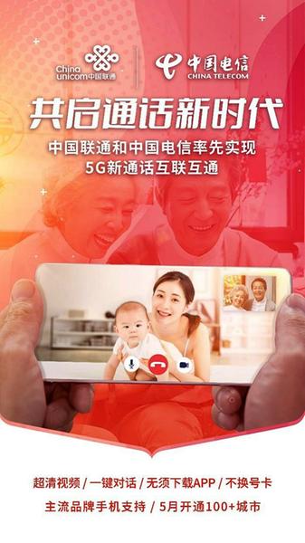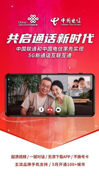 4月26日,中国联通、中国电信全球率先在深圳、杭州、郑州、天津等城市开通基于双方共建共享5G网络并实现互联互通的5G新通话超清视频语音通话服务(VoNR:VoiceoverNewRadio)。据悉,两家运营商将在5月份开通100个以上主要城市,其它地区也将陆续实现开通和互联互通。
