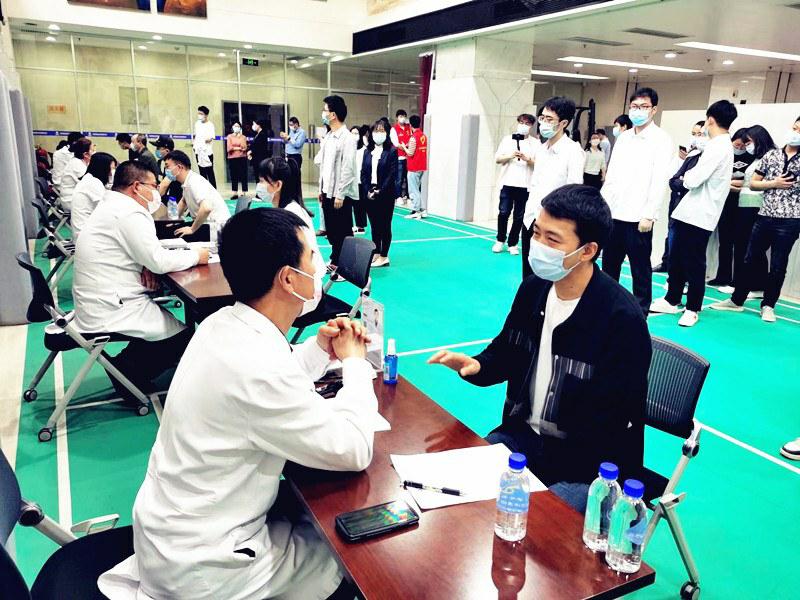 4月26日,由陕西省总工会主办的“迎五一弘扬劳模精神关爱劳动者健康”义诊活动启动仪式在中国电建集团西北勘测设计研究院有限公司举行。随后,医护人员进行现场义诊。
