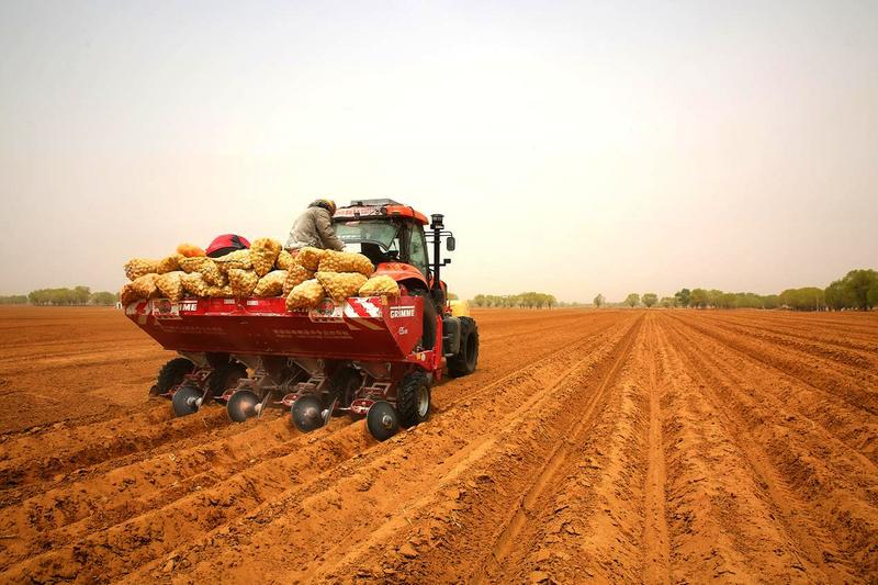眼下,草长莺飞、春回大地,位于定边县堆子梁镇种羊场村的马铃薯高产示范田里,播种机来回穿梭,村民们抢抓春播时机,进行马铃薯播种。