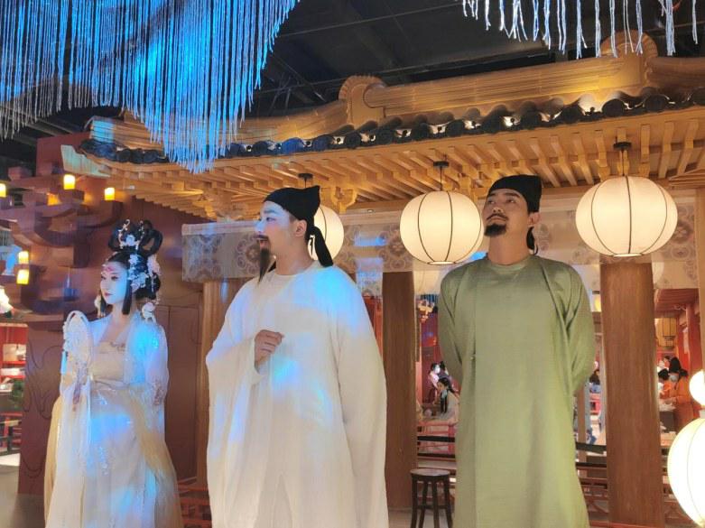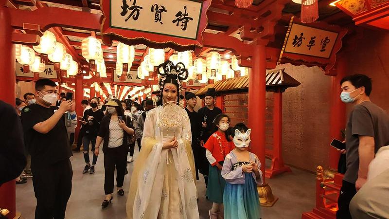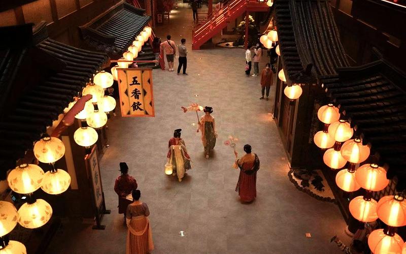据悉,此次开幕的十二时辰主题街,就是根据网剧《长安十二时辰》进行1:1的场景还原。小到灯笼柱子图案,大到栅足案与阁楼,无一不按照剧中模样呈现,将唐文化通过不同主题全方位呈现,一场跨越千年的盛宴大幕,徐徐拉开!在那里,可以穿唐装,参与唐朝沉浸式主题游戏,触摸香车宝马,看杨贵妃在空中荡秋千,跨越世代沟壑,回归千年之前,与众多文豪对酒当歌,各式各类的演绎层出不穷。