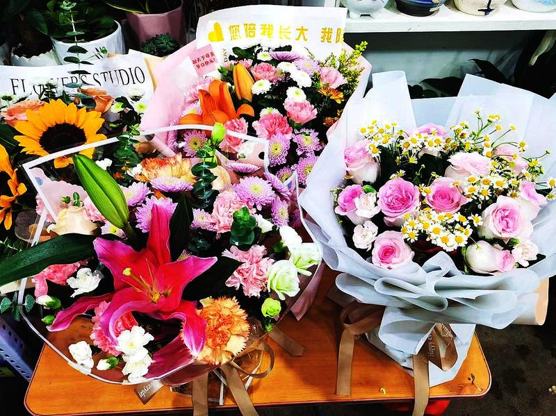5月8日迎来了“母亲节”,不少人张罗着给妈妈送一份母亲节礼物。记者在西安未央区街头的部分花店看到,康乃馨、玫瑰、百合等装饰好的组合花束摆放在显眼位置,花店前来订购鲜花的顾客络绎不绝,店员忙着制作顾客的订单。