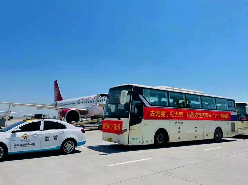 5月16日下午,陕西支援上海第三方医学实验室天博、凯普支援上海核酸检测队员,圆满完成支援上海抗疫任务,返回陕西。