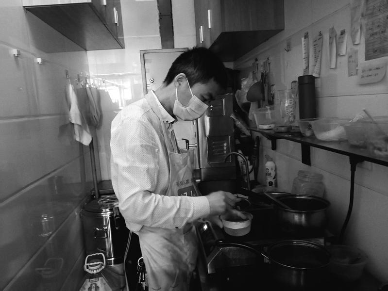 5月20日,大学毕业的李兴林在食品操作间为顾客准备凉粉等各类小吃。在古城咸阳地标性的统一广场北边,有一家在当地小有名气的凉粉小吃店,店主人是位大学毕业生。据介绍,他在求职的过程中,职业均不中意,迫使他下决心走自主创业之路,开“创”自己的人生。如今,他取名为“忘情凉粉”的小店,由于制作的凉粉、麻酱凉皮、肉夹馍、米线等各类小吃味道独特,且用料讲究等,每天吸引着许多新老顾客前来用餐。本报