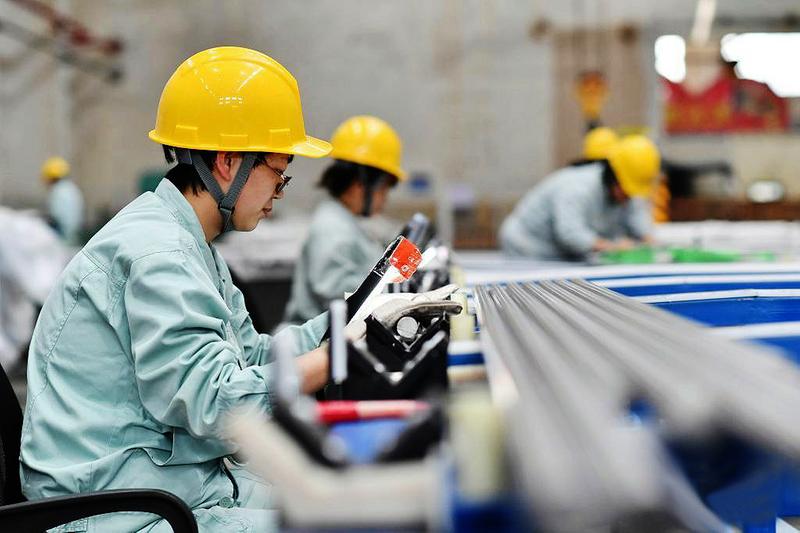 位于秦岭山脉脚下的陕西省宝鸡市拥有钛及钛合金、轨道交通装备、石油机械设备等多个产业集群,是西部地区工业重镇。今年3月,宝鸡市遭遇新冠肺炎疫情,当地政府及时成立企业服务领导小组,为企业解决实际问题,重点行业企业克服疫情影响不停产,政企合力实现保生产、稳就业。2022年第一季度,宝鸡规上工业总产值增长6.1%,实现经济平稳开局。图为工人在位于陕西宝鸡的宝钛集团生产车间工作。