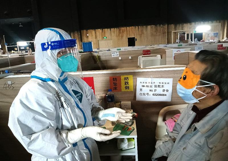 在刘明明的小组里,1999年11月出生的郭凤鸽还没满22岁,是她们医疗队里最小的队员,在这场没有硝烟的战争中,作为新兵,面对病毒,她们毫无惧色,很快进入了角色。在日常工作中,她们不但能高质高效的完成工作,而且面对困难,乐观勇敢,迎难而上,还主动观察患者心理状态,劝慰每一位患者,为他们在身体和心理上树立了战胜病毒的信心,用实际行动彰显青春担当。