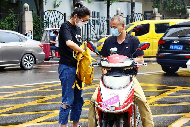▲西安市第七十五中学的考点门口,家长叮嘱孩子放平心态、正常发挥。