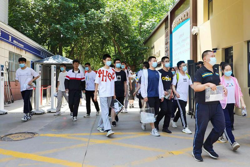 ▲在西安市第八十二中考点,首场语文考试结束,学生们走出考场。