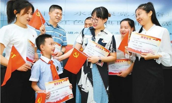 6月27日,西安市张家村街道水文二社区党委联合陕西省地震局直属机关党委举办“喜迎‘二十大’永远跟党走奋进新征程”红色经典诗歌朗诵比赛,以真挚的情感抒发对党的热爱和祝福,展现新时代社区党员砥砺奋进的精神风貌,活动期间还表彰了优秀党务工作者和优秀共产党员。图为诗歌朗诵获奖选手赛后交流心得。
