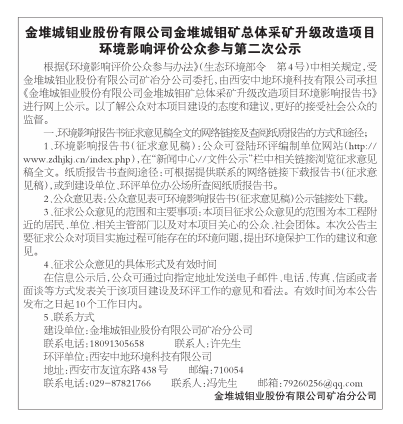 金堆城钼业股份有限公司金堆城钼矿总体采矿升级改造项目环境影响评价公众参与第二次公示