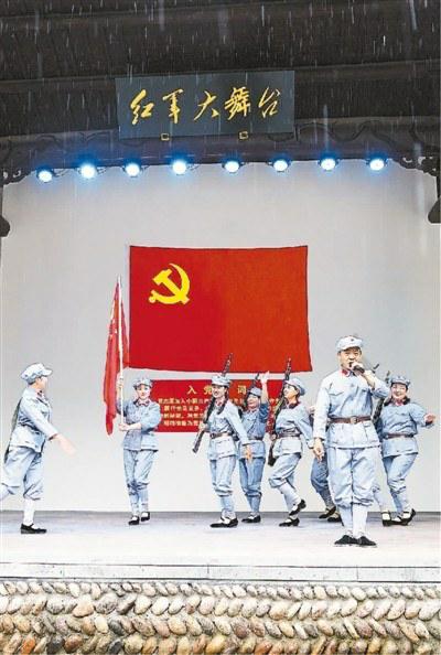 近年来,浙江省丽水市遂昌县王村口镇用好红色资源,实现了“红色旅游”向“红色经济”的蝶变。图为演员在遂昌县王村口镇的红军大舞台上为游客进行表演。程昌福 摄