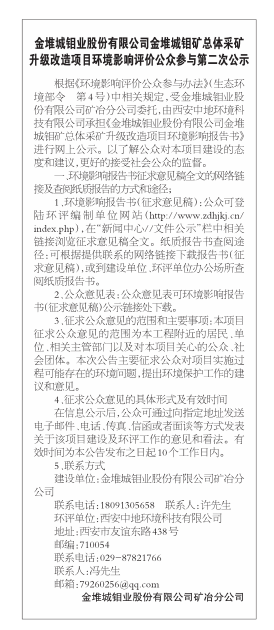 金堆城钼业股份有限公司金堆城钼矿总体采矿升级改造项目环境影响评价公众参与第二次公示