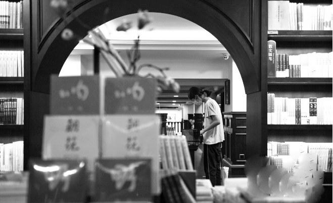 近日,西安持续高温,各大书店、图书馆成为学生消暑休闲、学习“充电”的好去处。图为西安市钟楼附近一书店内,一名女孩在文学区书架前浏览。