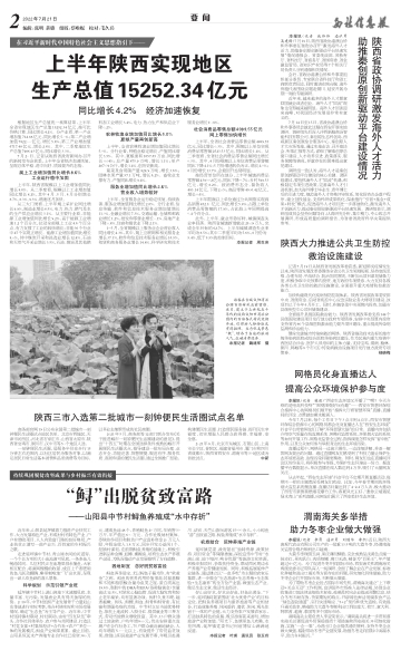 上半年陕西实现地区生产总值15252.34亿元