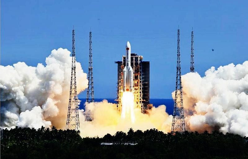 ▲7月24日,搭载问天实验舱的长征五号B遥三运载火箭,在我国文昌航天发射场点火发射。新华