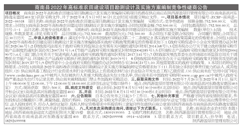 商南县2022年高标准农田建设项目勘测设计及实施方案编制竞争性磋商公告