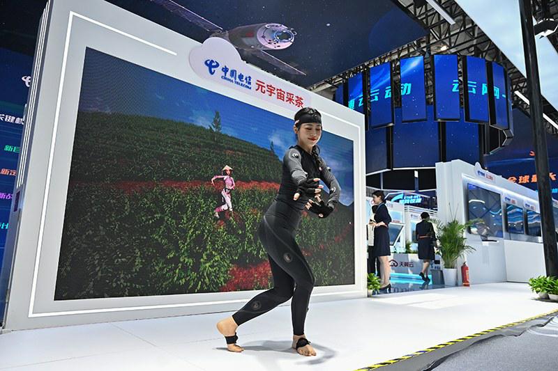 7月22日,工作人员在第五届数字中国建设成果展览会上展示“元宇宙采茶”项目。