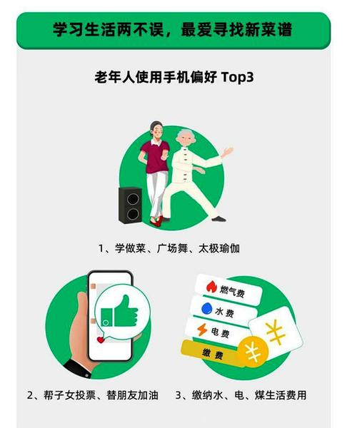 《报告》显示,在老年人购买智能手机的理由中,“打电话、使用微信等社交软件”位列TOP1,通过车、马、邮件与家人朋友保持联系的时代已经逝去,老年人渴望用新的通讯工具与亲朋好友连接,以满足自身情感互动的精神需求。