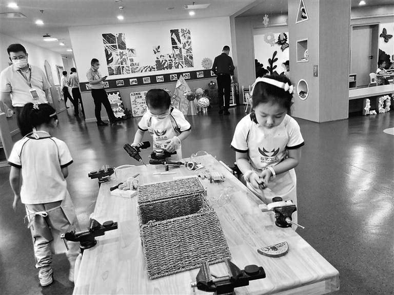 孩子们在幼儿园老师指导下做手工 教育是实现创新发展、突破发展和高质量发展的重要支撑。近日,陕西省教育高质量项目建设现场推进会在西咸新区召开,记者和与会人员一起,观摩了西安市创新港中学(创新港西安交通大学附属中学)、沣西新城文教园第一小学、沣西新城第三幼儿园等学校。