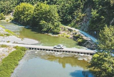 陕西省安康市财梁社区,车辆穿行在山水之间。