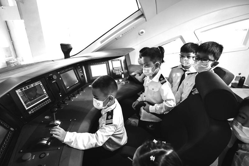 在机车驾驶舱,孩子们沉浸式体验了机车启动、加速、制动停车,第一视角感受驾驶火车的真实环境,当了一把“火车司机”。