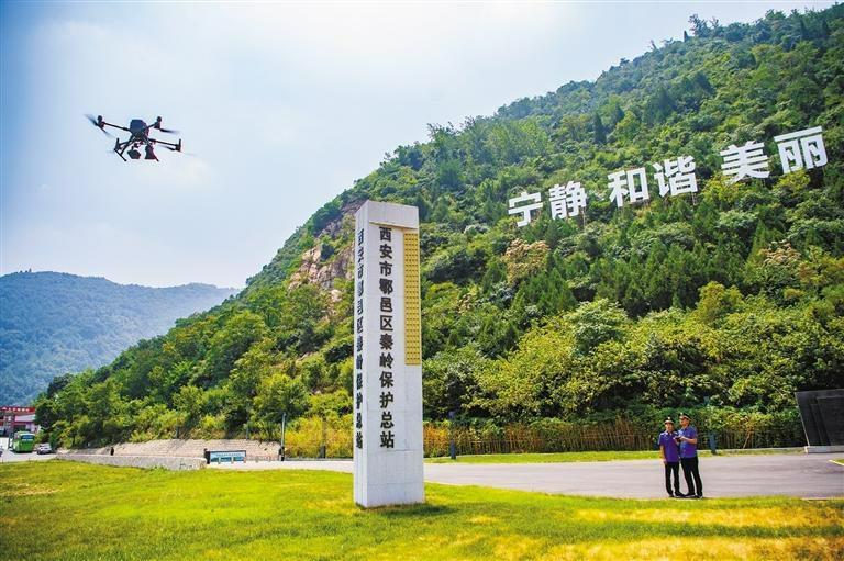 耿锐斌是西安市鄠邑区秦岭生态环境保护总站党支部书记,他每天要带领无人机小组队员对秦岭区域进行飞防。他说:“无人机的飞行高度在150米左右,可以对秦岭区域的植被、建筑物、林区等实况进行直观呈现,就像‘飞毛腿’‘千里眼’,助力我们实现智慧管山。”