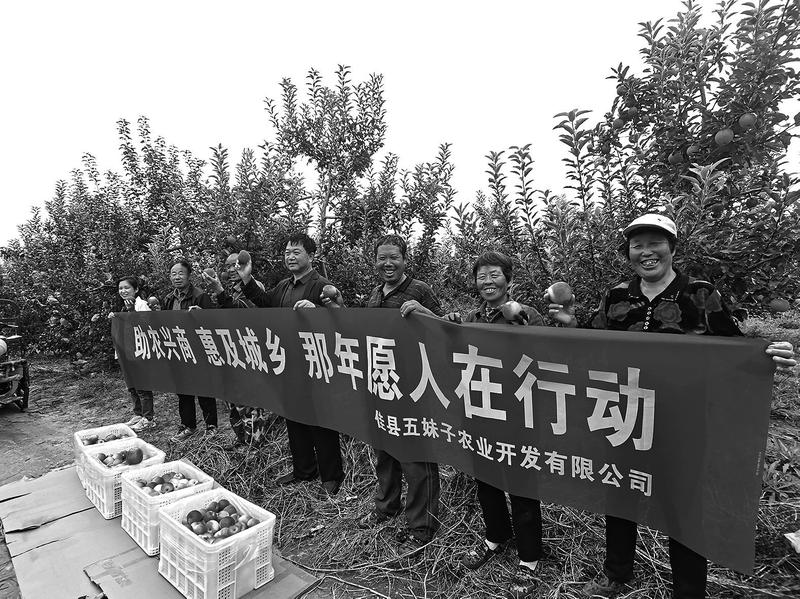 佳县五妹子农业开发有限公司积极响应“万企兴万村”行动,和农户建立收购联结机制,签订的杂粮种植面积达3600亩,辐射3个乡镇,11个自然村,同时与192户贫困户签订农产品收购协议,该行动助农产品订单销量720吨,销售收入达860万元。其中贫困户192户532人,实现增收180万元,人均3383元,带动了农民增收,走出了一条“企业+基地+农户+互联网”的路子。