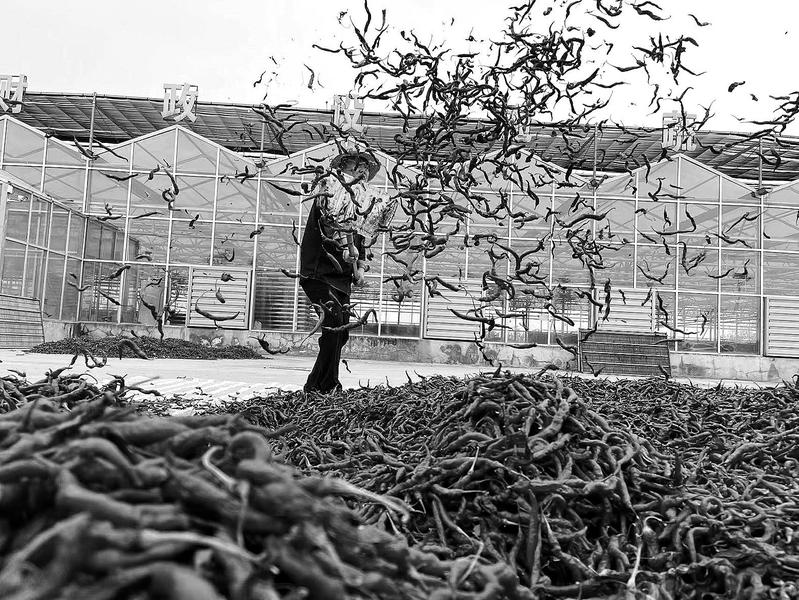 兴平市种植的10000亩辣椒迎来丰收季,无论是在田间地头,还是在凉晒场上,到处都是群众采摘辣椒、拉运辣椒、凉晒辣椒的身影。兴平市金鹏辣椒专业合作社理事长张建波介绍,尽管今年在辣椒生长的关键时期遇到高温、多雨,但每亩地还是可以产350到400公斤干辣椒,目前,市场收购价每公斤干辣椒40元,效益还是可以的。兴平是久负盛名的“辣酸之乡”,这里的辣椒色泽鲜红、椒身细长、肉厚籽多、皱纹均匀的鲜明特征。成熟后的兴平辣椒,颜色鲜红亮泽,椒肉肥厚,干椒皱纹密而均匀,辣香浓郁,品质优良,富含多种维生素、蛋白质和氨基酸。2010年,国家对“兴平辣椒”实施地理标志产品保护。