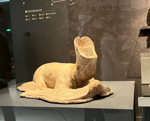 跪拜俑的发现是考古人员始料未及的。当所有陶片满满的平铺在地上时,突然一个安详的、五官端正的俑头引起了大家的注意,这种和善的面孔与相貌狰狞的镇墓俑形成鲜明对比。