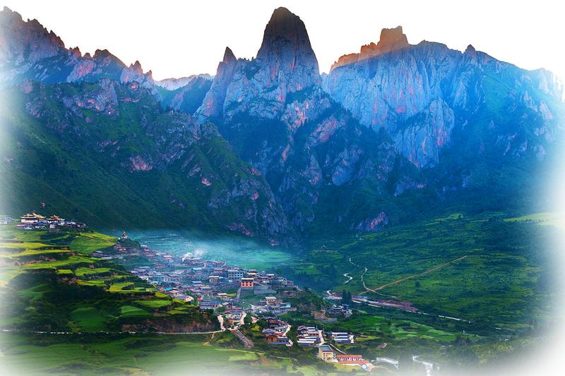 扎尕那 走进一道天然石门,扎尕那的神秘面纱随之被一层层地揭开,其地形既像一座规模宏大的巨型宫殿,又似天然岩壁构筑的一座完整古城。扎尕那,藏语意为“石匣子”。由达日、代巴、业日、东哇四个村子和拉桑寺院组成美丽山寨。正北面是雄伟矗立、璀璨生辉的光盖山石峰,东边是耸峙壁立、凌空入云的岩壁;南边有两座石峰拔地而起,相峙并立而成石门。置身其中,宛若仙境,让人不得不惊叹于大自然的鬼斧神工。