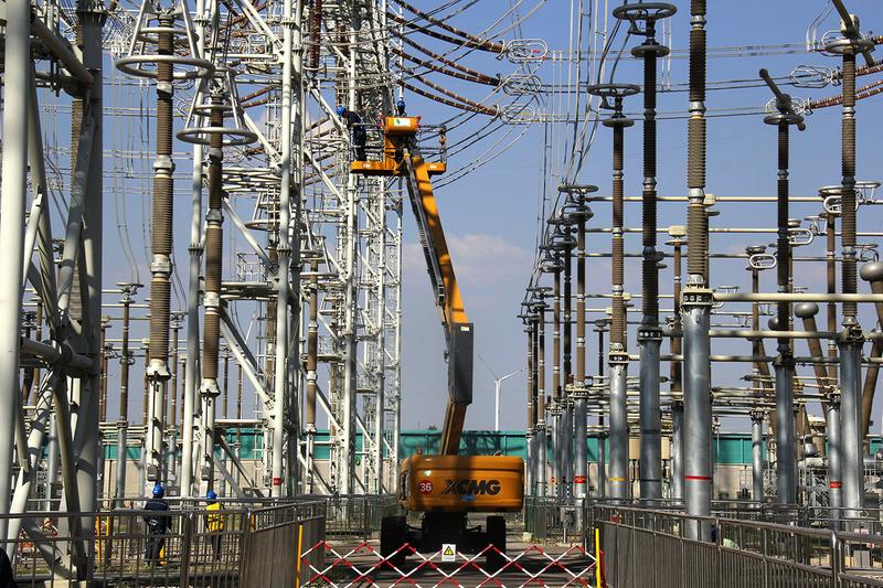 陕武直流检修人员进行陕北换流站交流滤波器场均压环金具更换。国网陕西电力供图