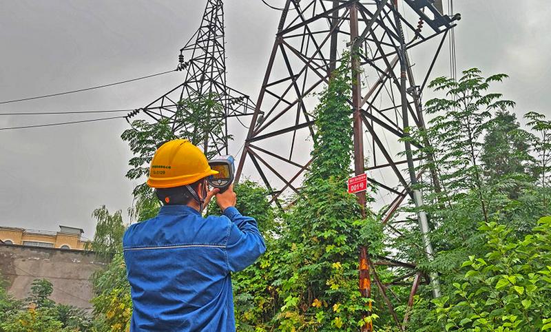 国网陕西电力工作人员对蓝田的输配电线路通道巡查。袁博