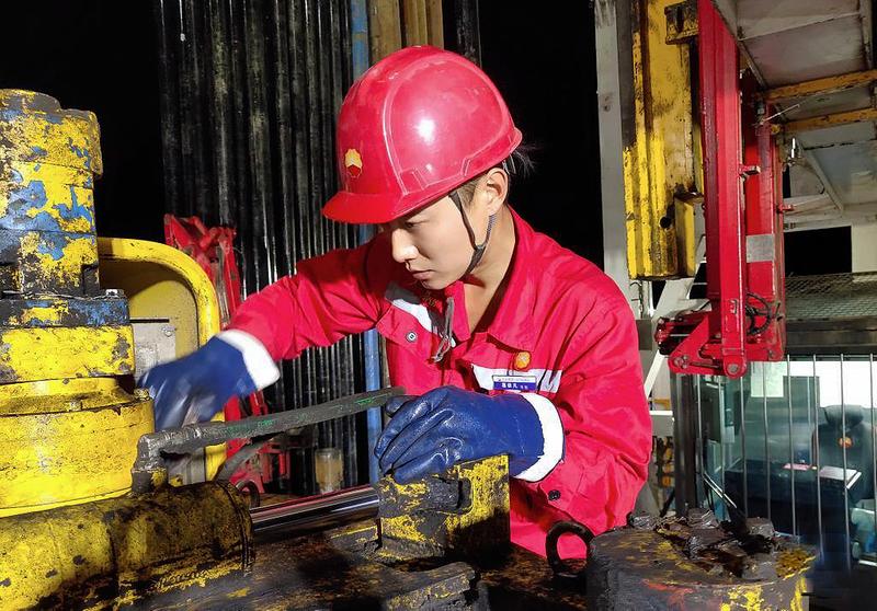 10月17日,黑龙江大庆油田1205钻井队青年员工葛依凡在作业中。段永坚 摄