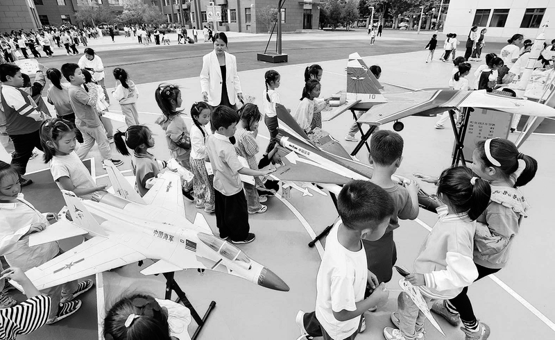 同学们参观航模展。