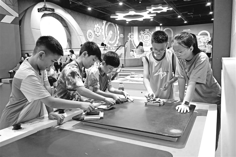 近日,不少青少年在长安云—西安科技馆内体验游玩。暑期以来,该馆推出“延时开放+暑期不闭馆”服务,同步开展多项科普惠民沉浸式体验活动,吸引游客超过200万人次。