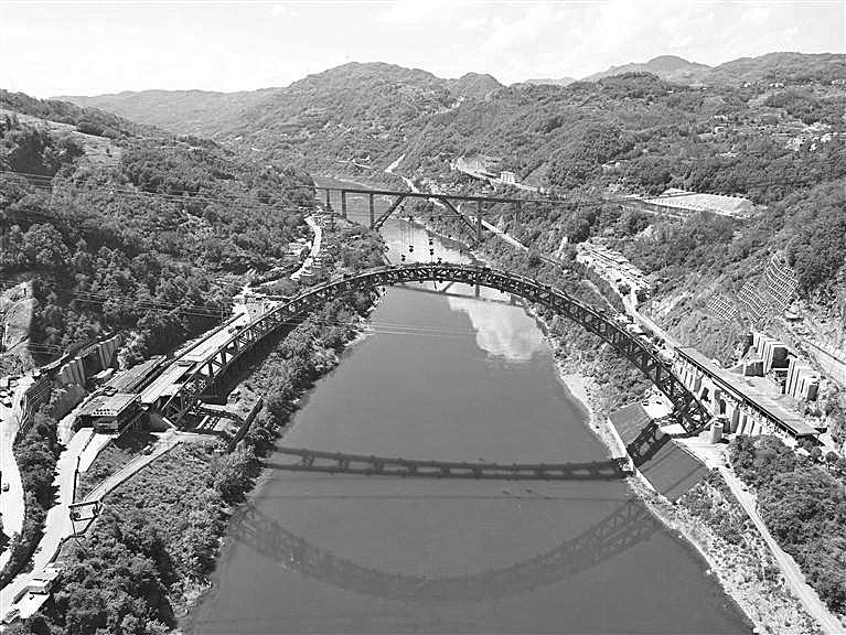 安康汉江大桥全长367.9米,主拱跨度达290米,是目前全国高速铁路单孔跨度最大的中承式钢管混凝土拱桥。