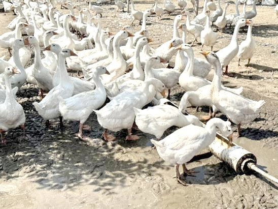 扬州大鹅养殖基地采取“党支部+基地+合作社+农户”模式,对大鹅进行统一育雏、分散养殖、集中回收、统一出售,并以果园地、玉米地、苜蓿地套养扬州鹅的方式进行“循环示范试验”养殖。目前,全镇林下循环养殖大鹅可实现20000只以上,养殖周期约120天左右,存活率达98%以上,带动了周边村民实现“家门口”就业,小鹅雏正逐渐成长为带动群众增收的“致富鹅”。