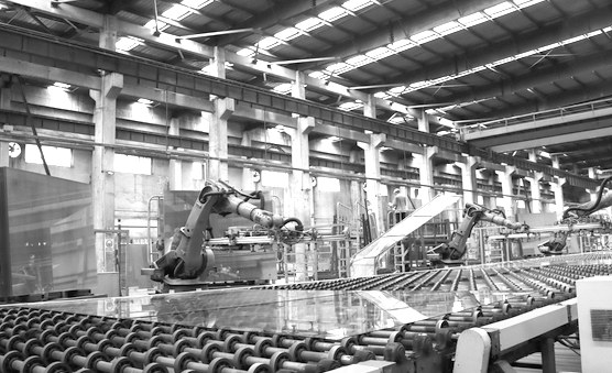 近日,在神木市瑞诚玻璃有限公司的现代化生产车间内,生产线高速运转,智能机械臂有序作业,设备满负荷运行。国网榆林供电公司共产党员服务队对企业配电室和关键用电设备进行红外测温和运行检查,帮助企业提前发现并处理用电隐患。