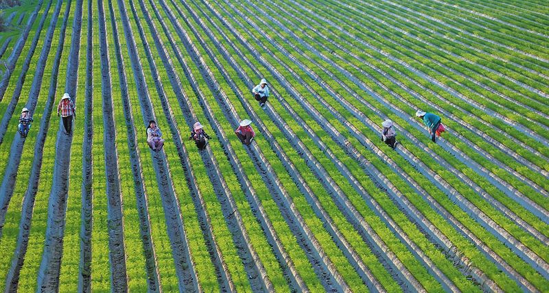 从农机精准作业到科学田间管理,高效的现代农业技术为大荔沙苑红萝卜的优质生长提供了全方位保障,目前,全县10万亩红萝卜长势喜人。图为在大荔县赵渡镇红萝卜种植基地,群众忙着为红萝卜间苗。
